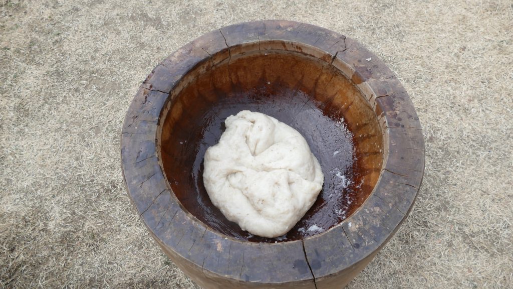 そしていよいよ、蒸しあがったお米を臼へ。